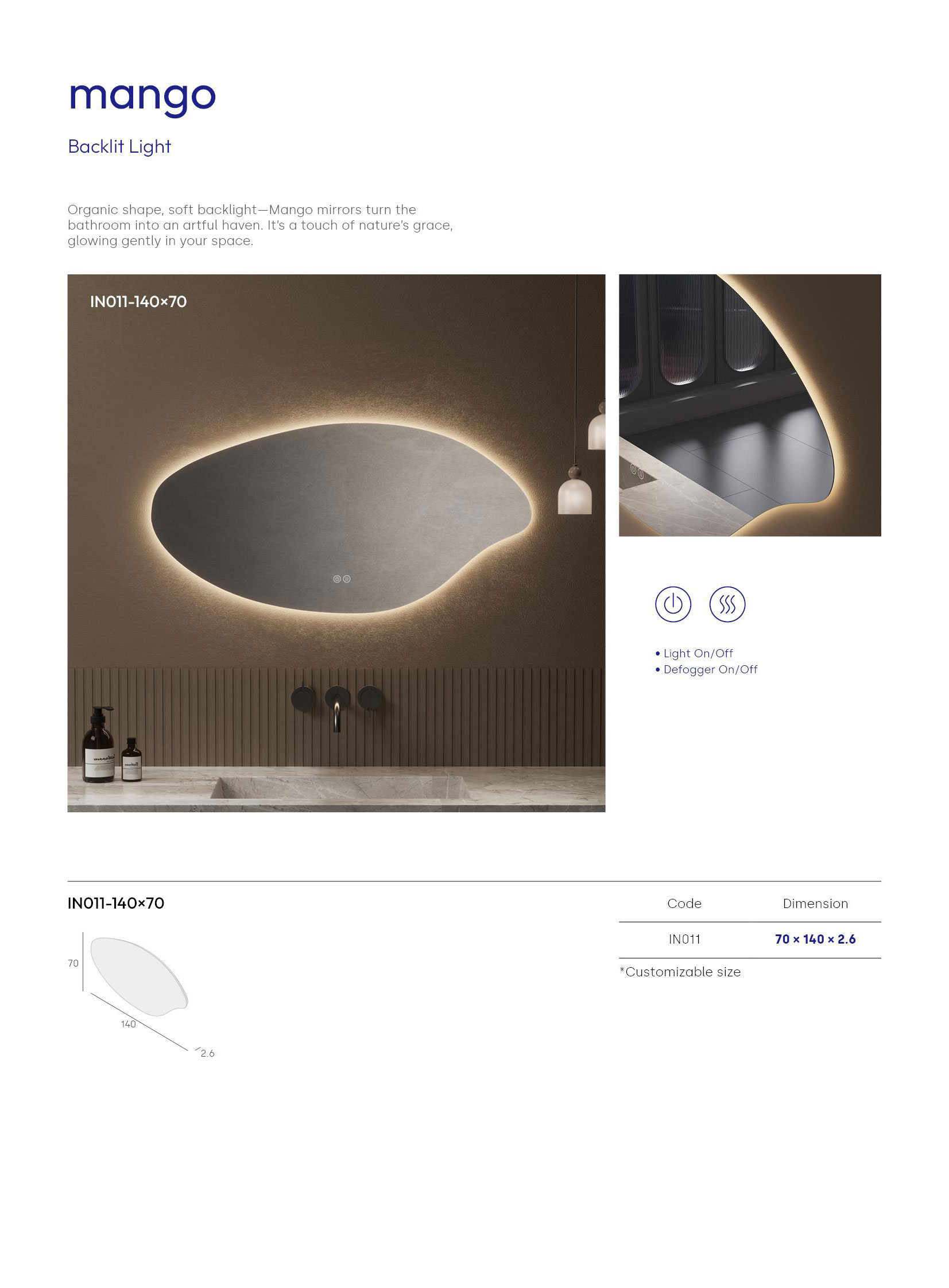Home ->Products ->irregular frameless mirror ->mango ->IN011-140x70