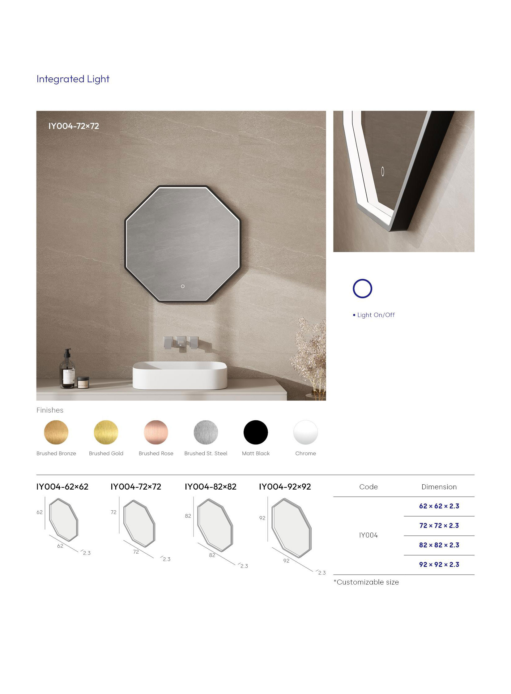 Home ->Products ->irregular framed mirror ->octagon ->IY004-72x72